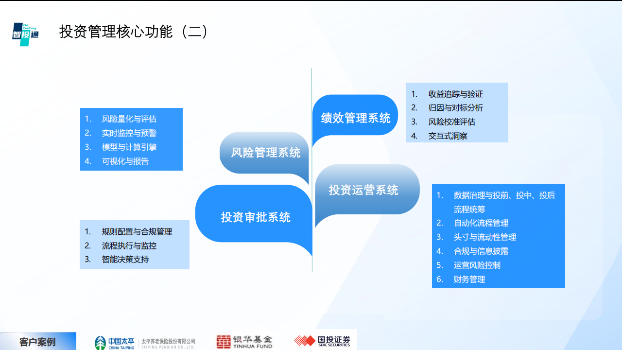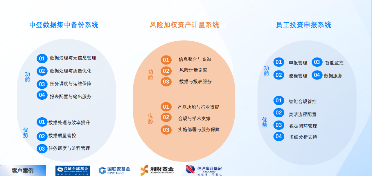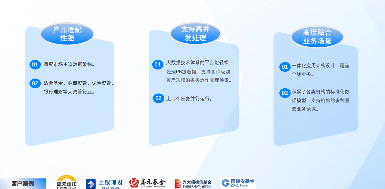 投資研究:提供管理和投資決策的系統(tǒng)化支持,投資場景的數(shù)據(jù)分析動態(tài)化、投資賬戶分析數(shù)據(jù)可視化。