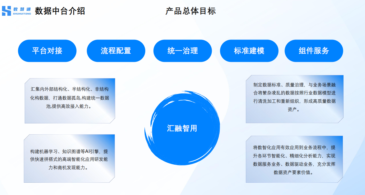 以孕育“匯、融、智、用”四大能力為核心目標,打通底層數(shù)據(jù),上層應用創(chuàng)新、 決策優(yōu)化,一體化貫通覆蓋全線業(yè)務。