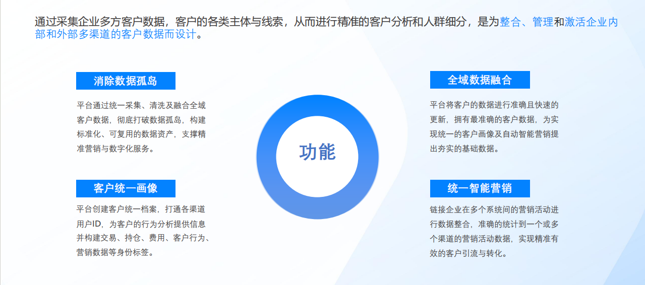 客戶營銷: 提供機構客戶深度價值分析,零售渠道畫像分析能力,長尾客戶的精準營銷轉化